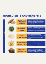 Sino-Sci Diabetic Care capsule is made from the extracts of Kudzu root, Rhizoma polygonati, mul-berry leaves, yeast chromium and maitake by advanced technology.